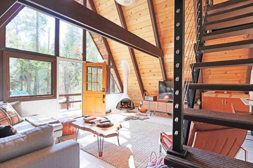 There is a spacious kitchen inside the A-frame house. Apart from the kitchen, you can find the living room on the ground floor as well.