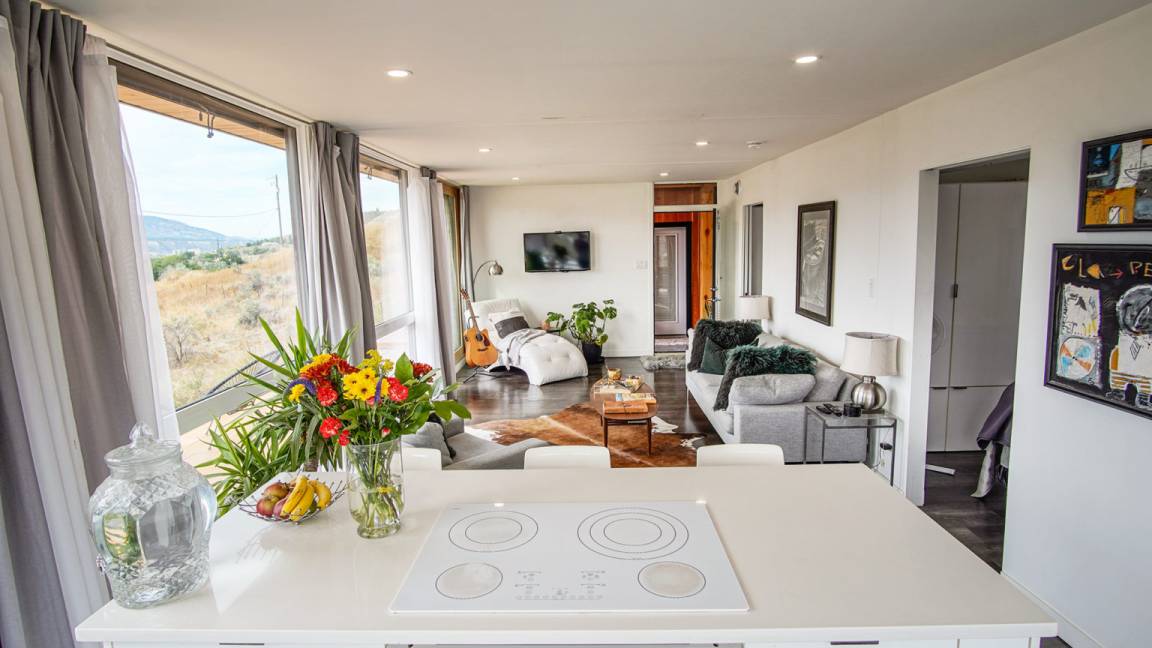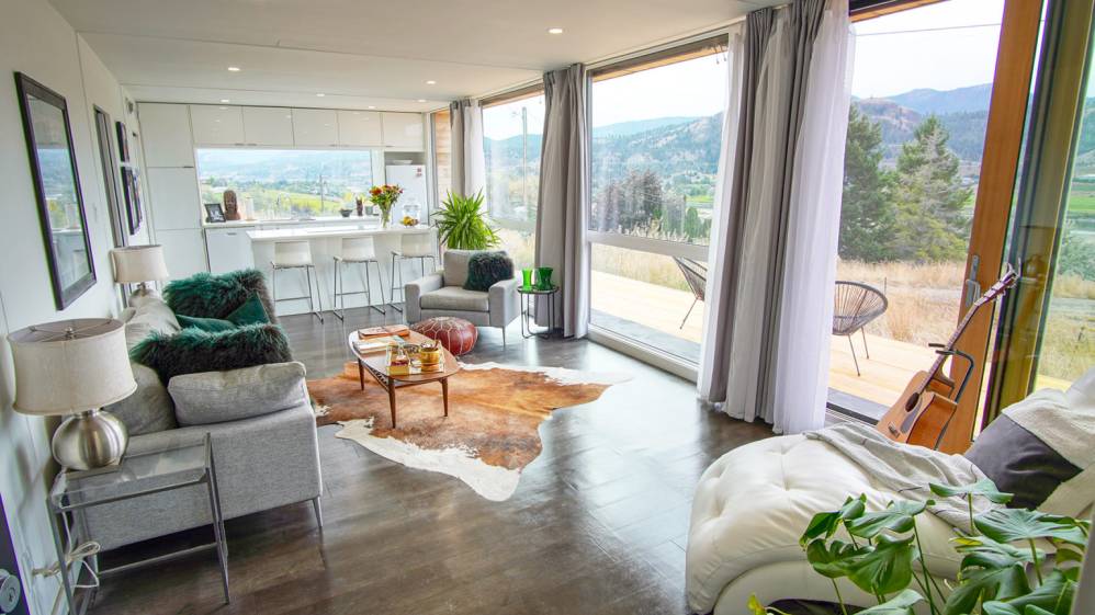 You will be impressed with the massive floor to ceiling windows that you can see in this shipping container house.