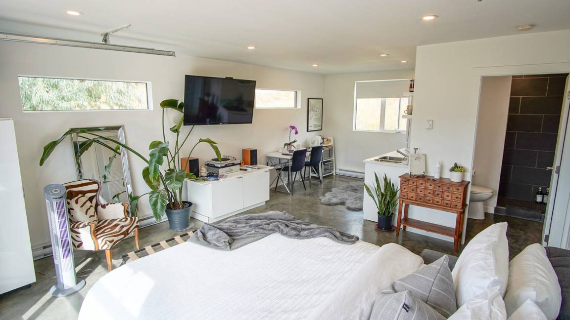 Inside the bathroom, you can find a shower, toilet, a full-sized bathtub, water heater, washer, and a dryer.