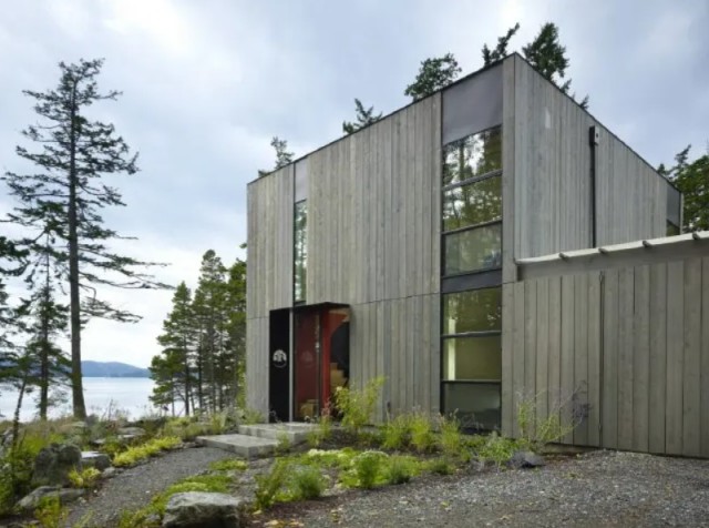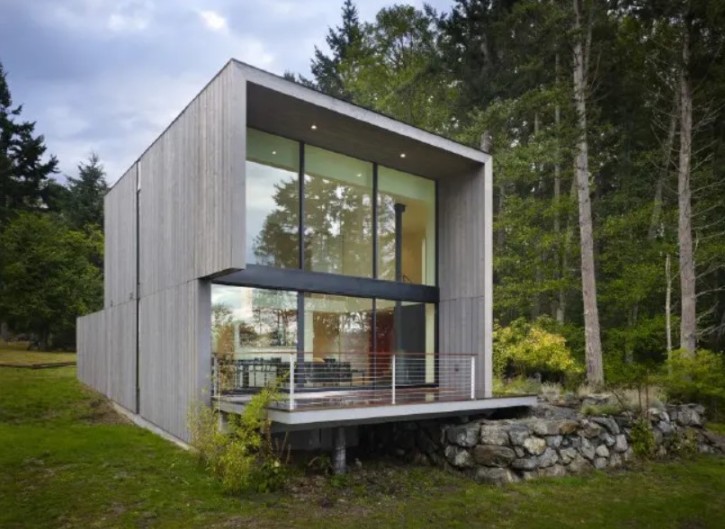 The box shape of the home is not something that you see on a daily basis. The incredible shape of the box is pretty clear when you look at it from the front of the property. The entire front wall is windows.