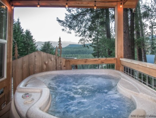 If you are looking to stay in cabin with splendid views you can consider this property by NW Comfy Cabins called Das Tree Haus.
