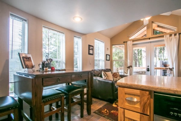 This tiny house is very rustic. It is a small space but it gives you the feeling that you are living amidst nature.