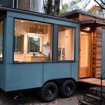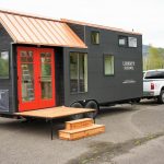 The tiny house has a 8′ tall full-light front door and large windows. The bedroom loft has a 5′ ceiling with three large windows and is big enough to fit a king bed.