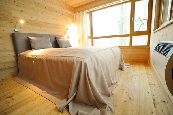 There are large windows inside the treehouse, especially in the bedroom, which will help anyone to connect with nature.