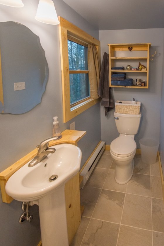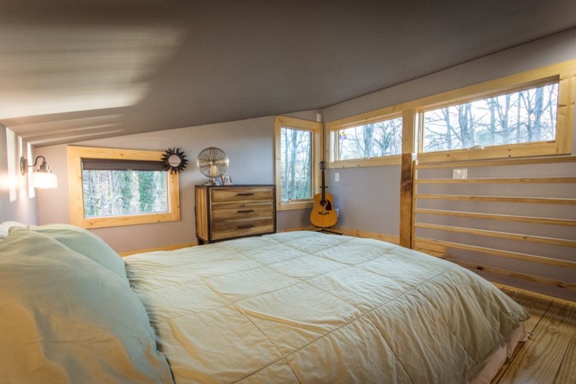 Since the kitchen is made out of wooden accents, you will be able to get a premium experience out of it. The bathroom is located in the loft. It is compact in size but has a nice window that offers great views.