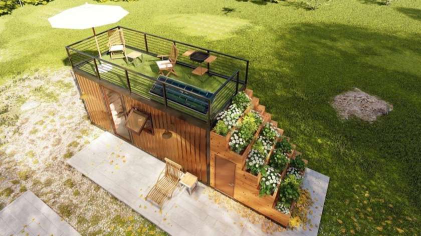Try this converted shipping container with a rooftop and deck garden.