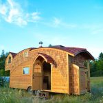 The Nashville Tiny House has a modern, minimalist design with clean lines, white space, and high ceilings. The 185-sq.ft. custom-built house is sustainably made from recycled wood on a restored trailer.