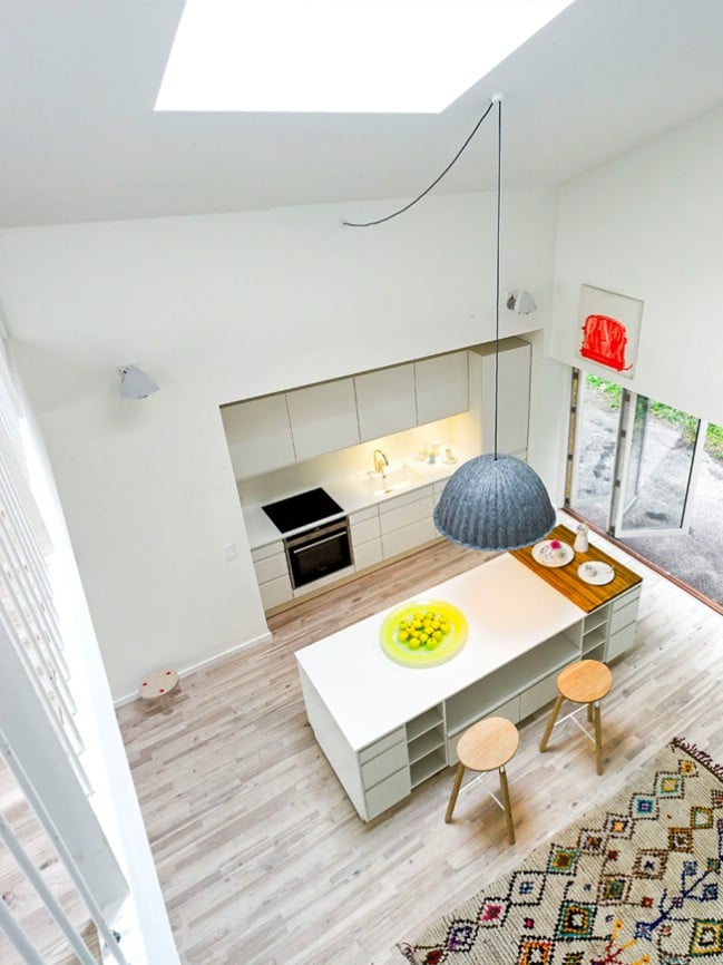 The architecture feels almost improvised — yet utterly refined. Two shipping containers are stacked like quiet sentinels, offset slightly to create a shaded lower patio and a slim upper balcony that catches the breeze. Inside, the industrial bones soften. Pale birch wood lines the walls; polished concrete grounds the rooms. The play of steel and sunlight creates a rhythm that changes by the hour. The designers kept things minimalist — not as an aesthetic, but as a lifestyle. No clutter, no waste. Just space enough for what matters.