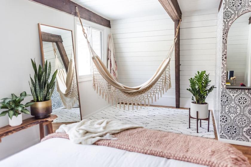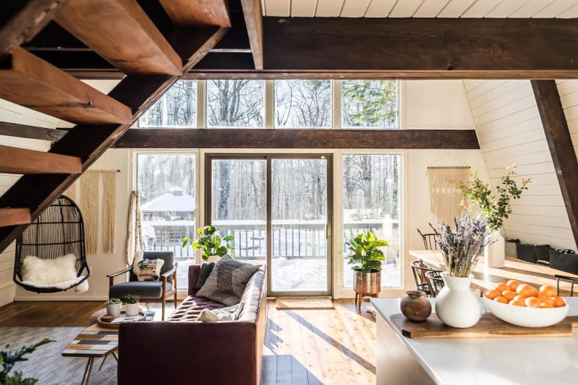 There are plants placed throughout the living space as well. Moreover, you can find a couple of bedrooms on the upper floor. Four people can sleep in these bedrooms at a time.