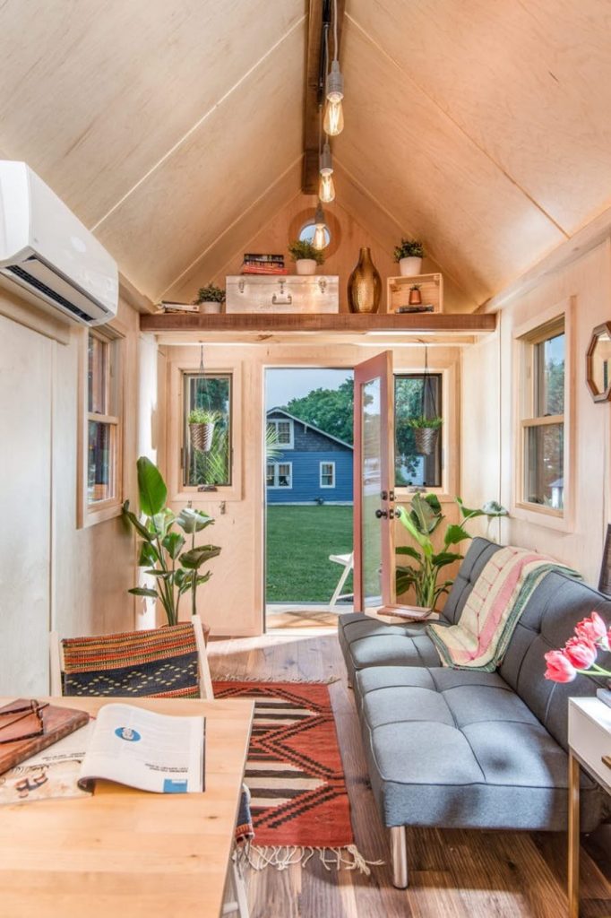 The Riverside is one of two of the very first tiny homes built by David Latimer of New Frontier Tiny Homes. In 2015, David & his father, Eddie, attended a Tumbleweed workshop and bought a set of build-plans. Modifying the plans, David went to work building two tiny homes & It was the building of these two homes that inspired him to start his own business, which eventually led to New Frontier Tiny Homes.