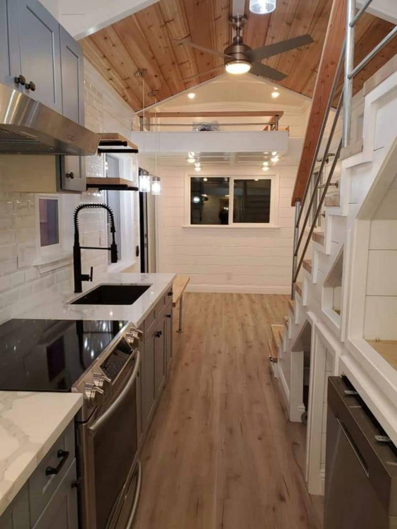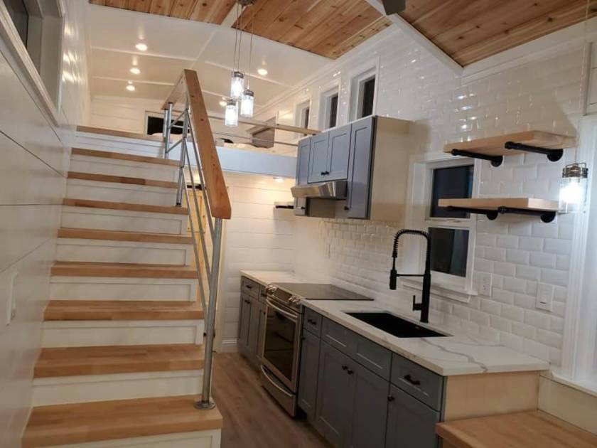 Lux is a tiny home style that is appropriate for all tiny space lovers. It comes with modern industrial accents with the additions of clean lines, as well as white paint that creates the illusion of the space.