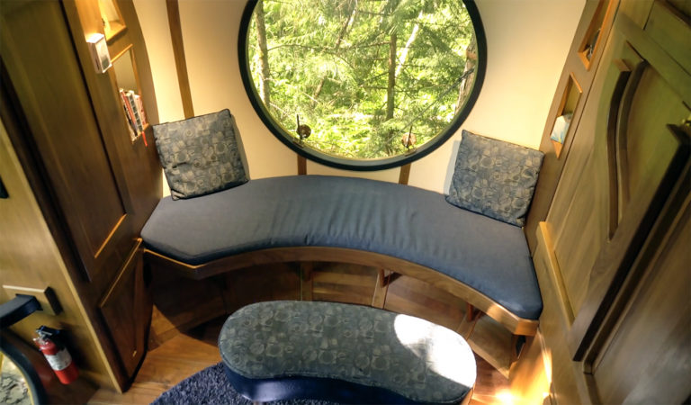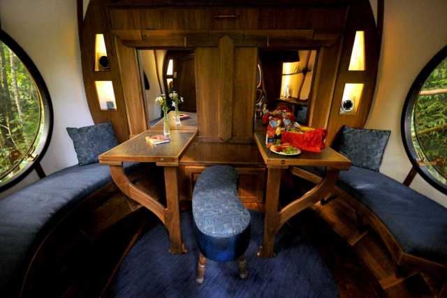 Even though the exterior of this treehouse looks like a sphere, you will be able to discover a well-organized space in the interiors.