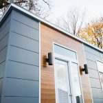 The tiny house has landscaping lights and a beautiful view of the stars.